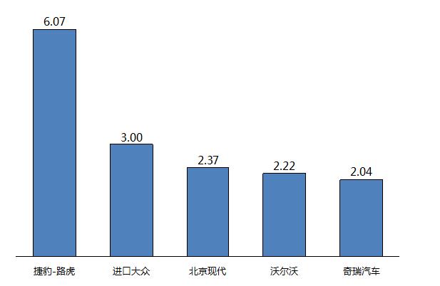 调查显示,3月份,有5个品牌的库存系数超过2个月。其中,自主品牌为奇瑞汽车,合资品牌包括:北京现代、沃尔沃;进口品牌包括:捷豹-路虎、进口大众。有部分进口品牌库存系数超过2个月,但因样本量不足,未公布。