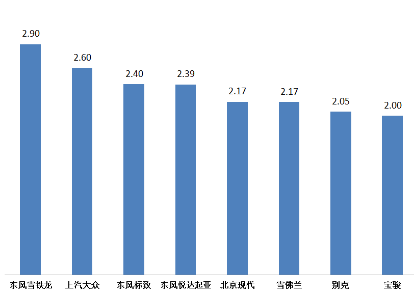 1月,8个品牌库存深度在两个月以上,分别是东风雪铁龙、上汽大众、东风标致、东风悦达起亚、北京现代、雪佛兰、别克、宝骏。