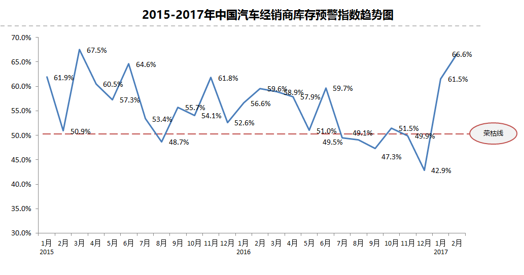 2017年2月份中国汽车经销商库存预警指数为66.6%