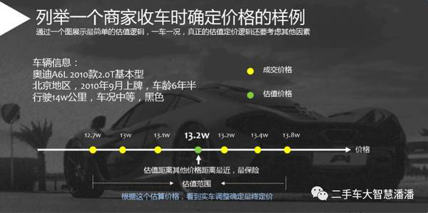 简单的说,估值价格大致分为几个大块,C2B车主和商家交易,B2B商家之间的交易,C2C个人间交易和B2C商家把车卖给终端用车人。期间又有交易细分出不同的价格。所以估值产品就不单单解决一个价格的问题,应该构架一个产业链的问题,在保证商家收车参考的同时,还要留出既定的利润空间,确保这辆车最终能卖的出去,更要细分很多不同的交易场景产生的交易特点,所以说笔者定义这款产品是一个架构者,这个架构,任何的失误都会是联动的。