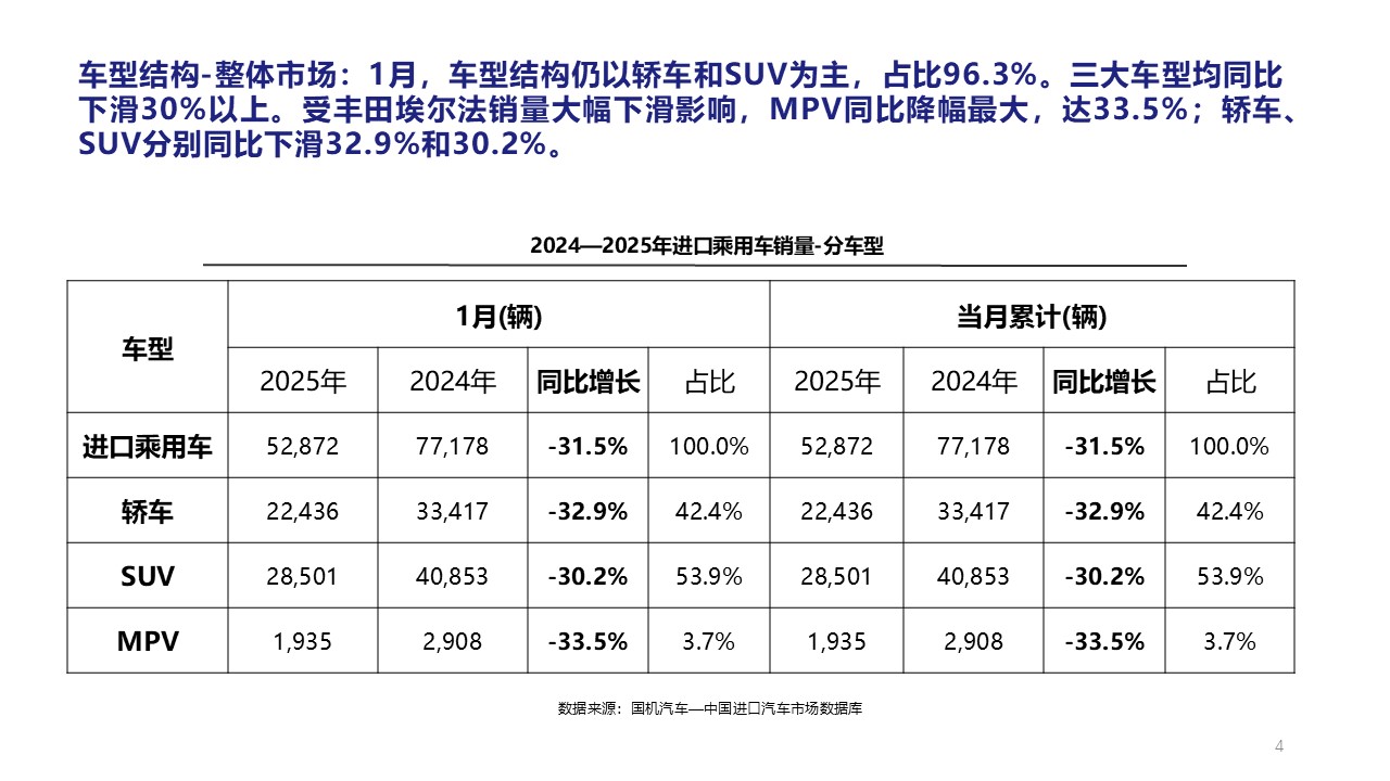 2025年1月中国进口汽车市场情况