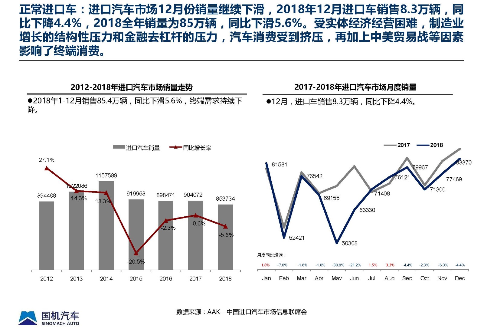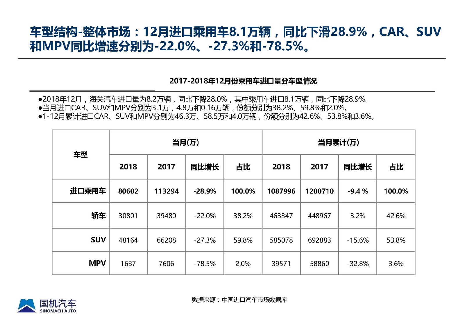 2018年12月中国进口汽车市场情况
