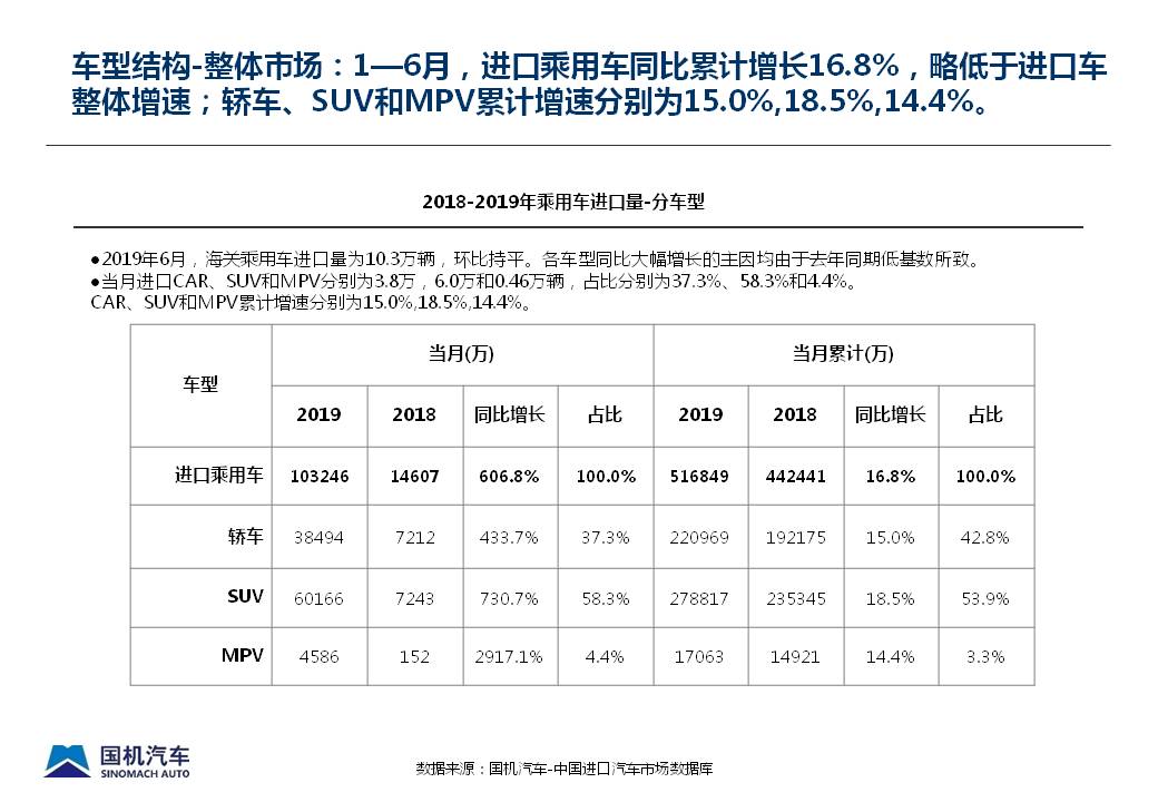 2019年6月中国进口汽车市场情况