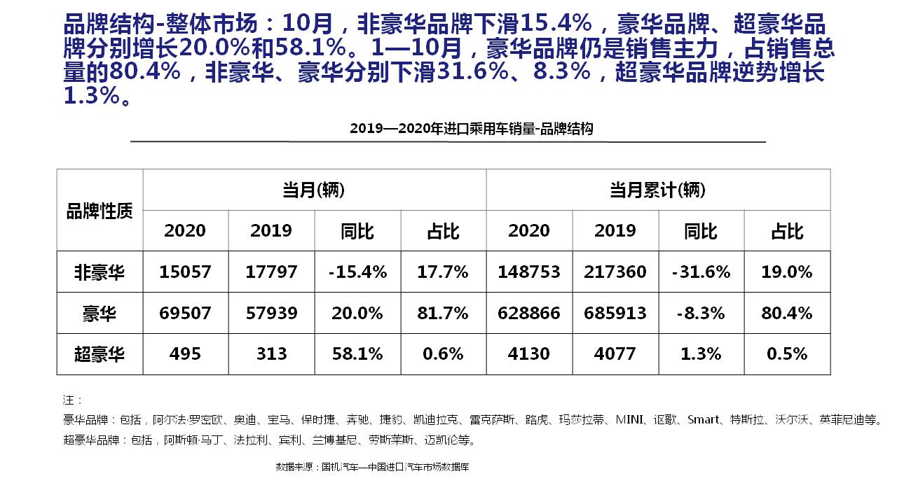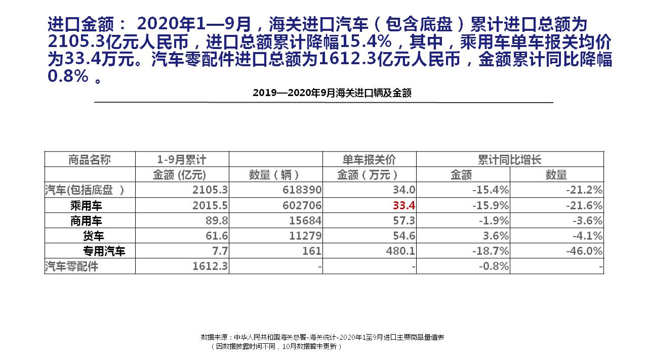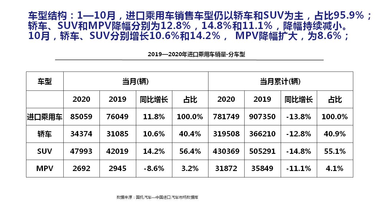 2020年10月中国进口汽车市场情况