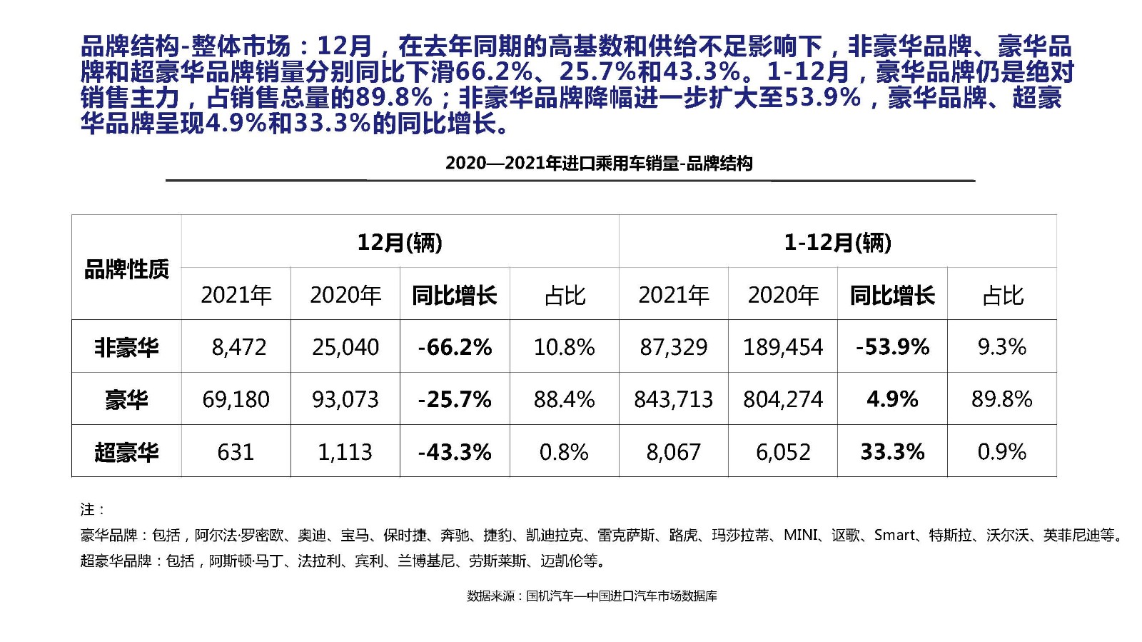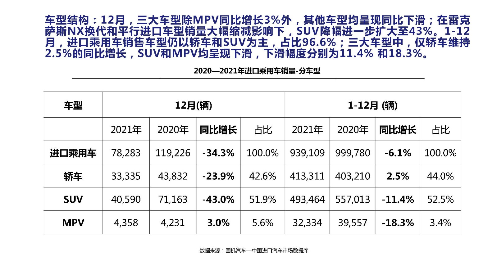 2021年12月中国进口汽车市场情况