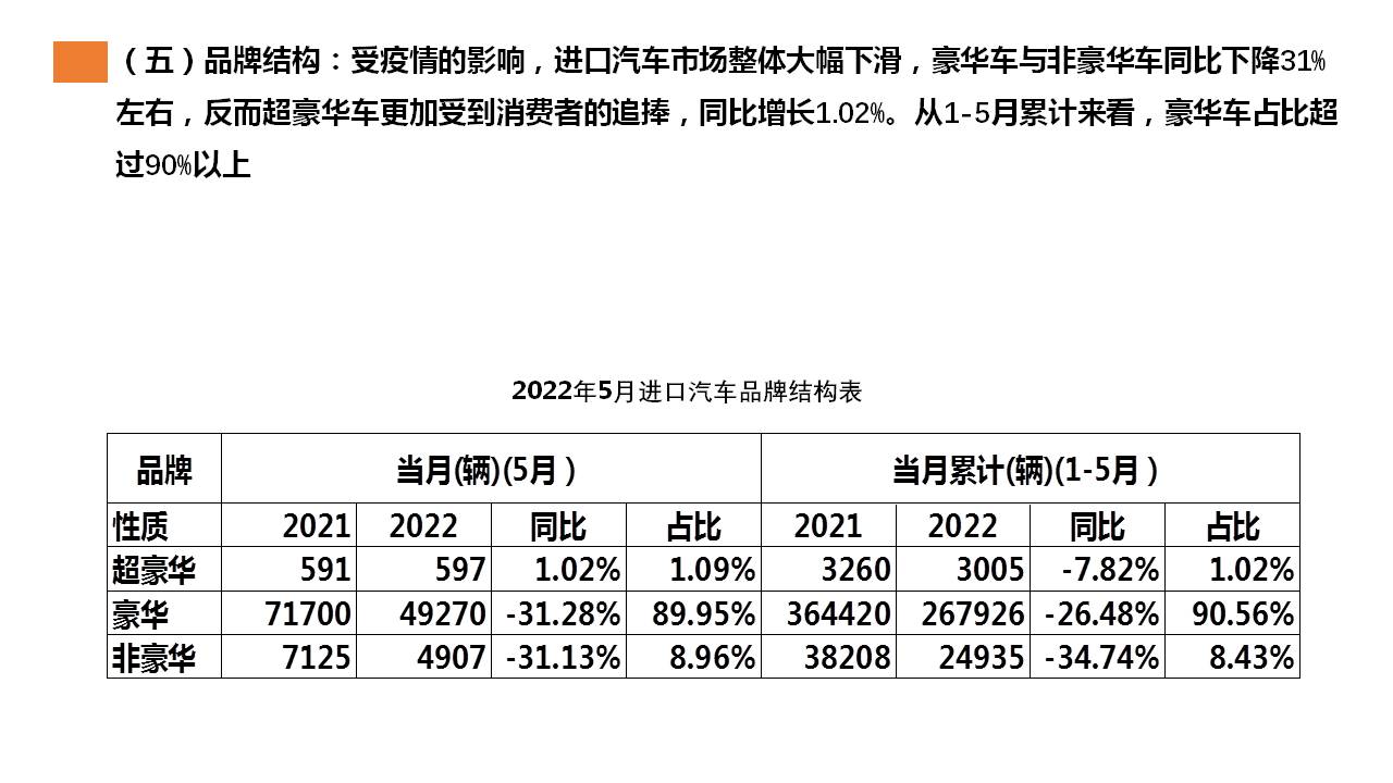 2022年5月中国进口汽车市场情况