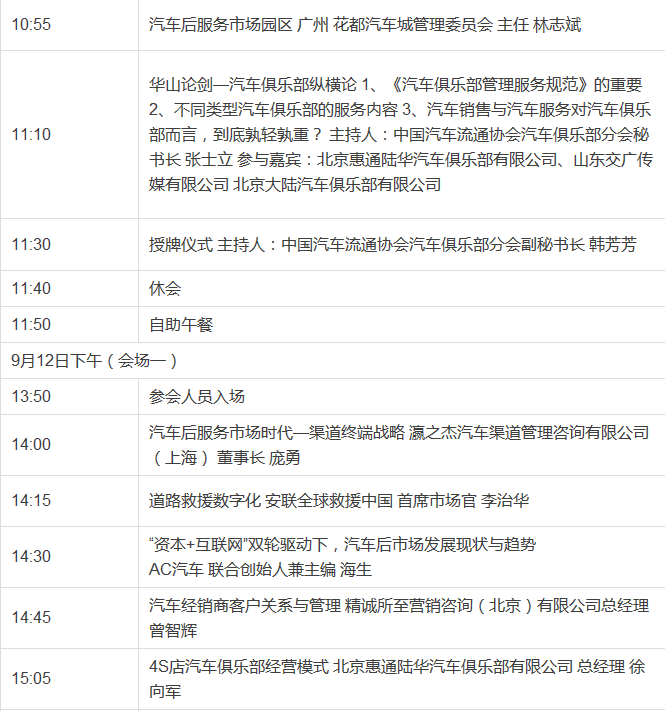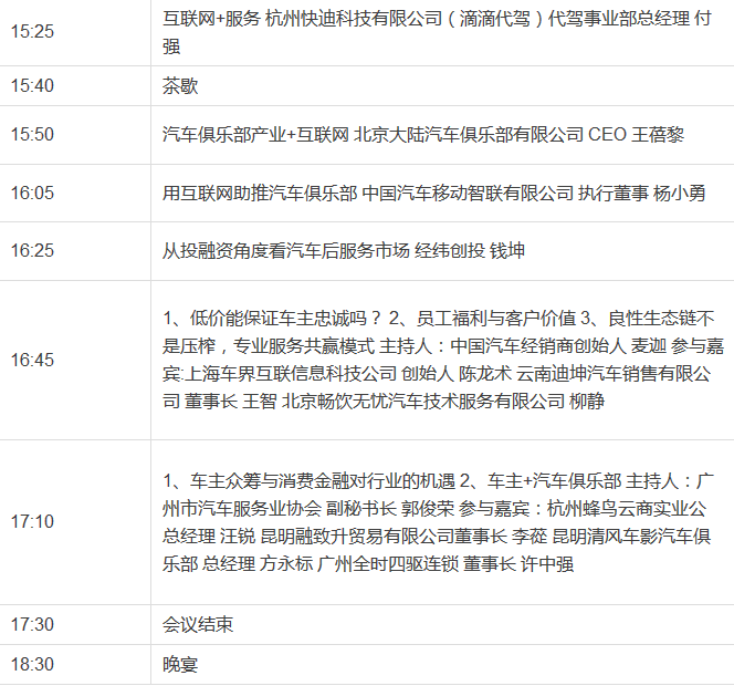 2015中国汽车流通协会汽车俱乐部行业年会暨首届中国汽车后服务市场高峰论坛会议最新议程