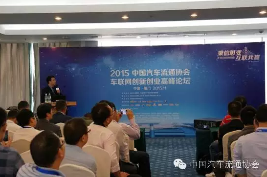 2015年11月6日下午,由中国汽车流通协会电商车联网分会主办的“2105中国汽车流通协会车联网创新创业峰会”在厦门国际会议展览中心隆重召开,围绕“市场、趋势、创新、创业”四大主题展开交流和讨论,来自流通行业协会、经销商集团、以及车联网企业代表、后市场企业代表和汽车服务商代表等100余人参加了本次峰会。