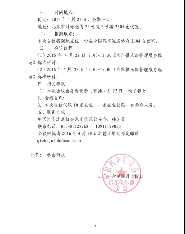 关于召开第二次《汽车俱乐部管理服务规范》 研讨会的通知