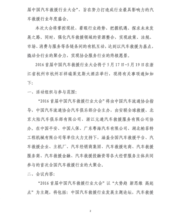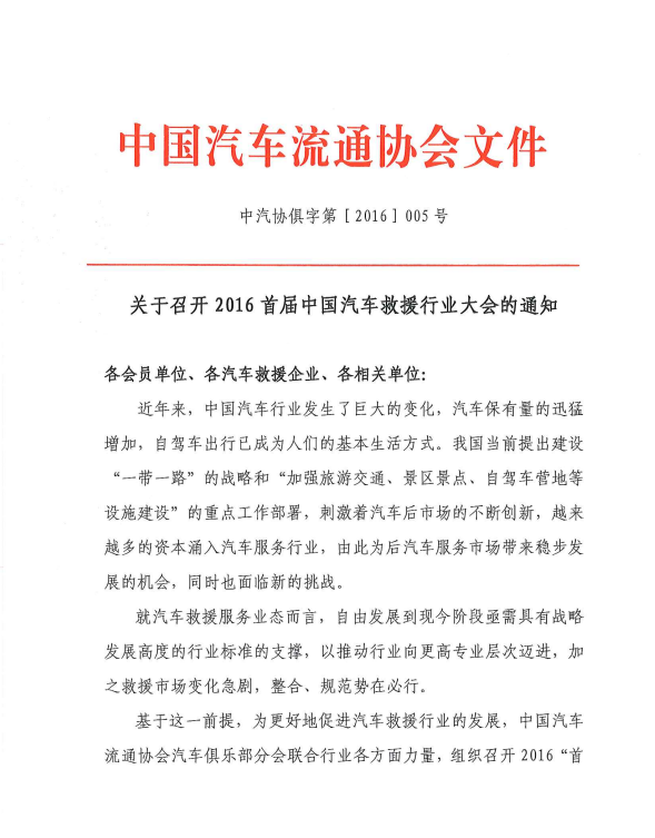关于召开2016首届中国汽车救援行业大会的通知