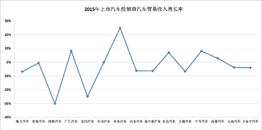 6部分上市经销商2015年汽车贸易收入增长率