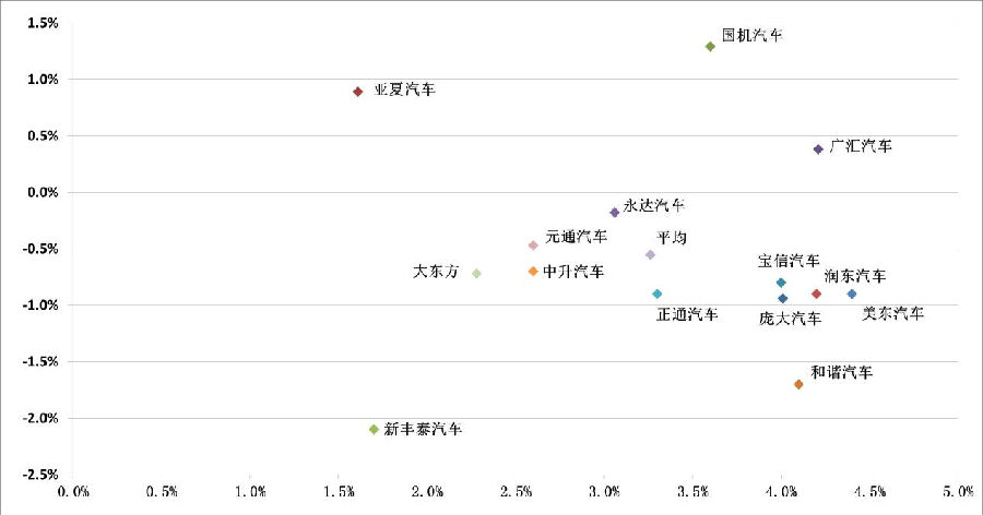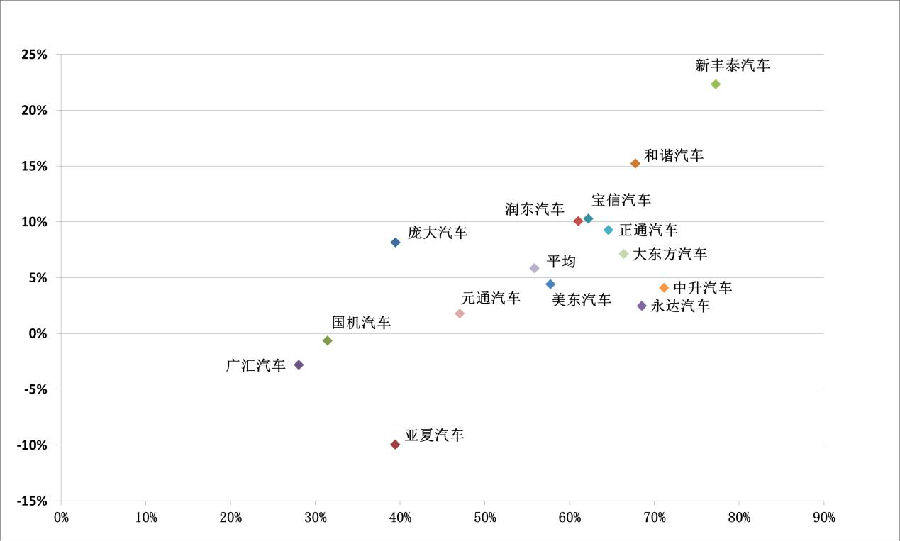 资料显示:和谐汽车、广汇汽车、润东汽车总资产增长率超过20%13家企业总资产平均增长3.43%,整体保持温和扩张。