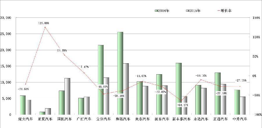5部分上市经销商2015年新车销量及增长率
