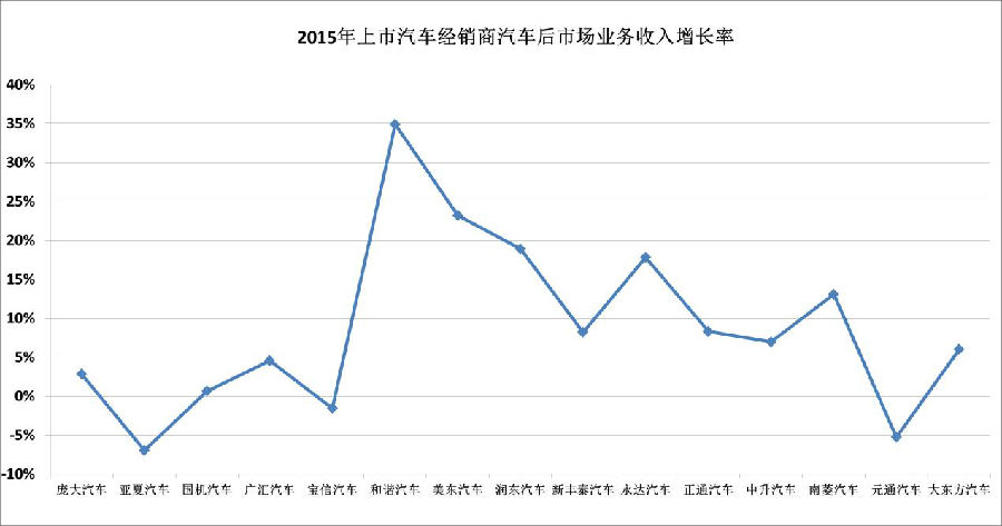 12部分上市经销商2015年汽车后市场业务收入增长率