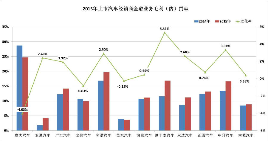 14部分上市经销商2015年汽车相关业务利润率及变化