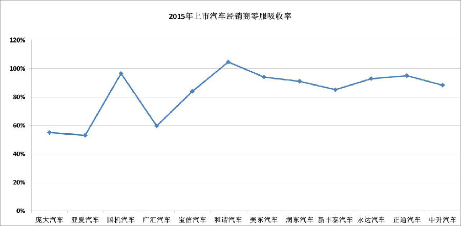 22部分上市经销商2015年零服吸收率
