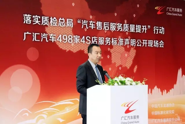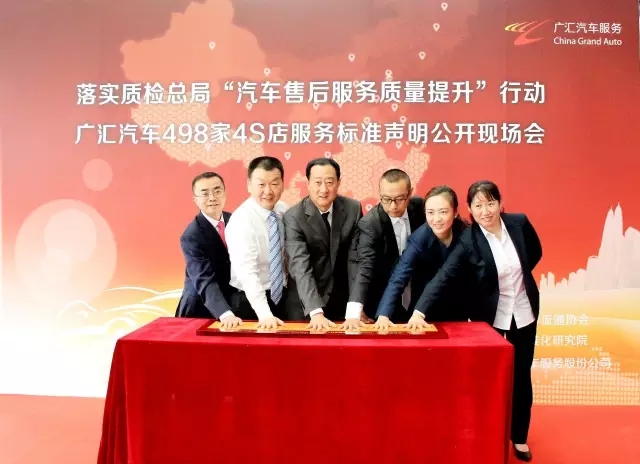 2016年5月27日,由中国汽车流通协会、中国标准化研究院主办,广汇汽车服务股份公司承办的“落实质检总局‘汽车售后服务质量提升’行动 广汇汽车498家4S店服务标准声明公开现场会”在北京寰宇恒通一汽大众奥迪4S店举行。国家质检总局质量司姚业强,中国汽车流通协会会长沈进军、副会长刁建申,中国标准化研究院服务标准化研究所程永红,广汇汽车董事长李建平、总裁王新明参加会议?;嵘?,广汇汽车携旗下498家4S店进行了企业服务标准自我声明公开,共同向消费者郑重承诺“机电维修一次修复、单方事故无人伤代办理赔服务、免费检测”三项内容。