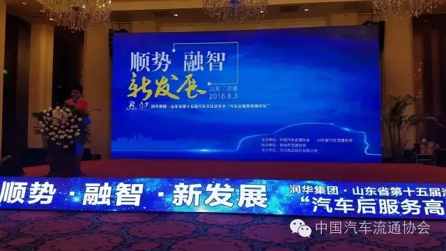 2016年8月3日,主题为“顺势、融智、新发展”的润华集团·山东省第十五届汽车文化艺术节开幕暨“汽车后服务高峰论坛”在济南市山东大厦隆重举行。本届高峰论坛由中国汽车流通协会、山东省汽车流通协会主办,各地市流通协会协办,润华集团承办,有关部门领导、各地市汽车行业精英人士、省内主流媒体共200多人出席了会议。