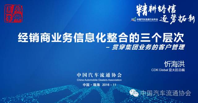 CDK Global亚太总裁忻海洪先生在经销商分论坛上以“经销商业务信息化整合的三个层次”为主题,与嘉宾分享了整合的三个层次。第一个是店面的整合,第二个是集团内的整合,第三个是生态圈的整合。