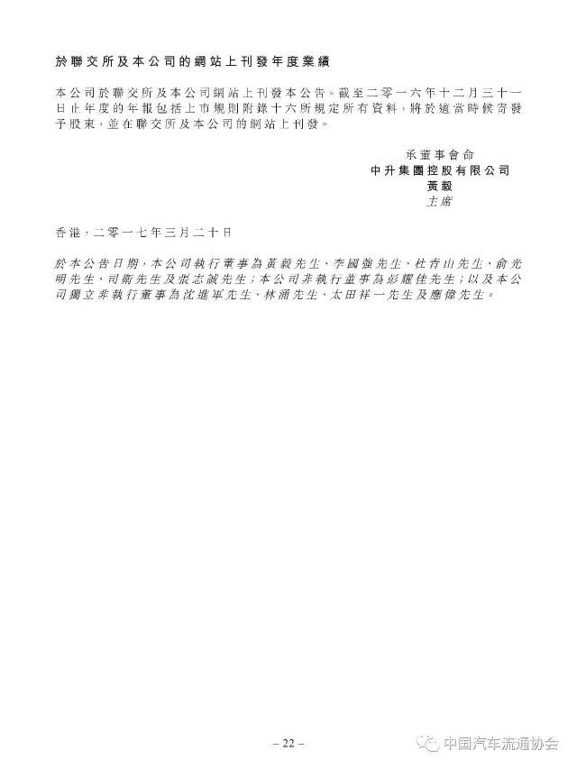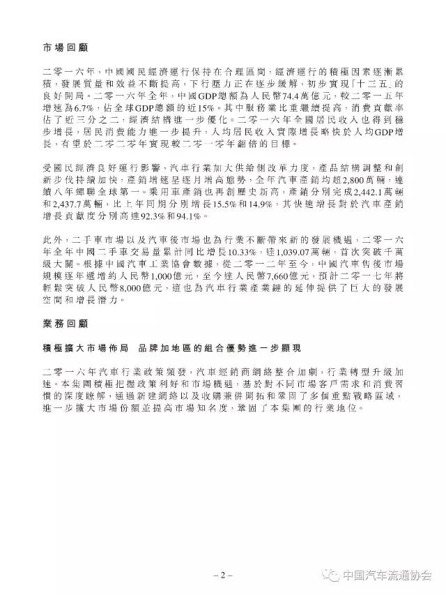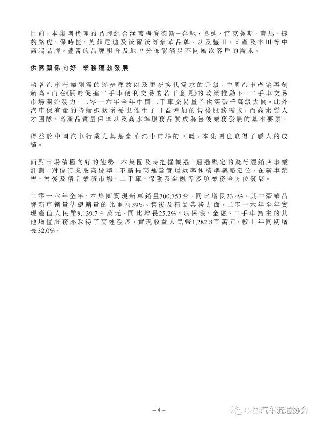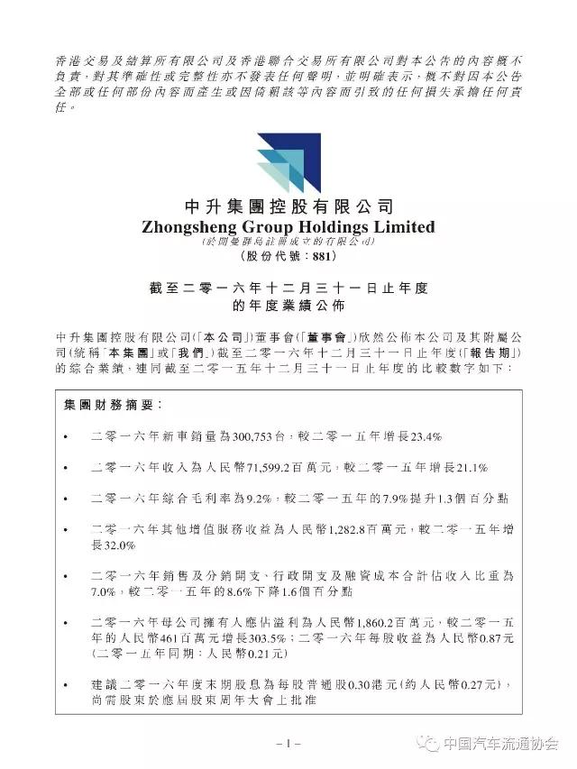 百强汽车经销商集团“中升汽车”2016年度经营业绩公布