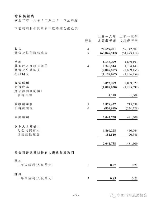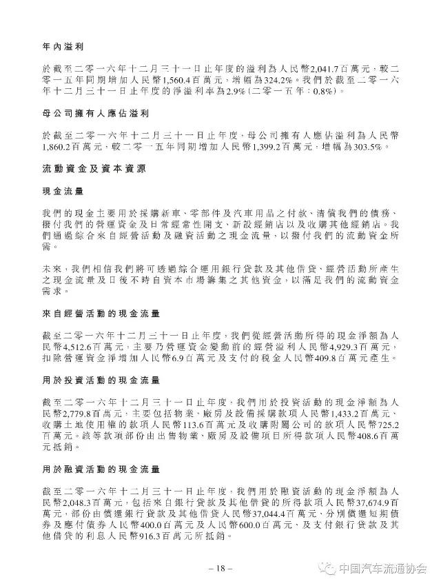 2015年百强汽车经销商集团排行榜中排名第三的中升集团控股有限公司(以下简称“中升汽车”)于今日公布了其公司及附属公司2016年1月1日至2016年12月31日的综合经营业绩。相关数据显示,中升汽车在2016年的各项经营活动中取得了骄人的业绩,特别是集团净利润增幅超过300%,企业盈利能力得到大幅提升。