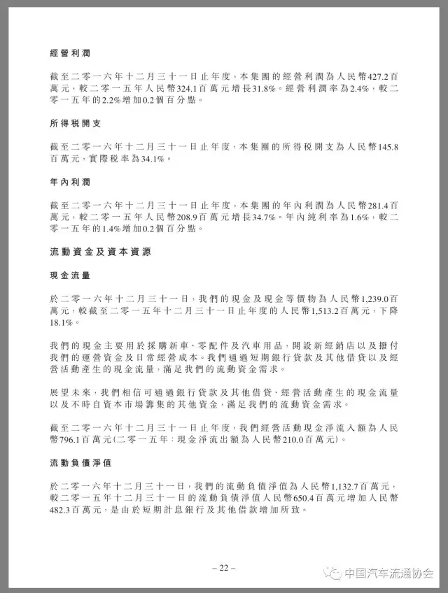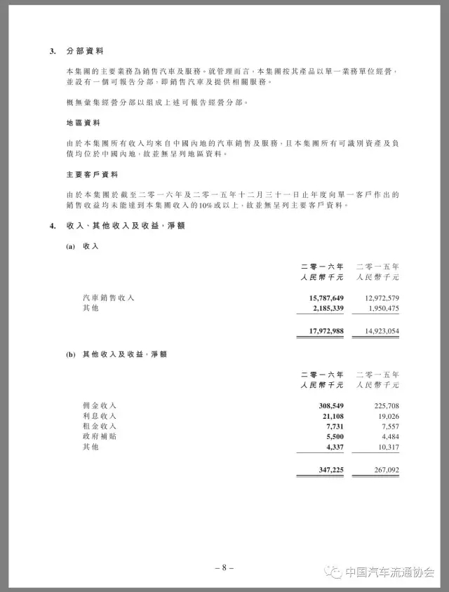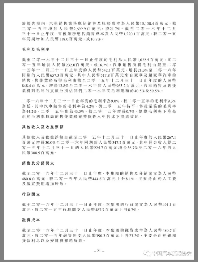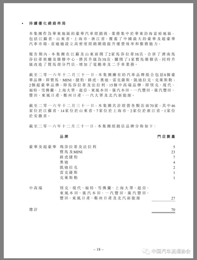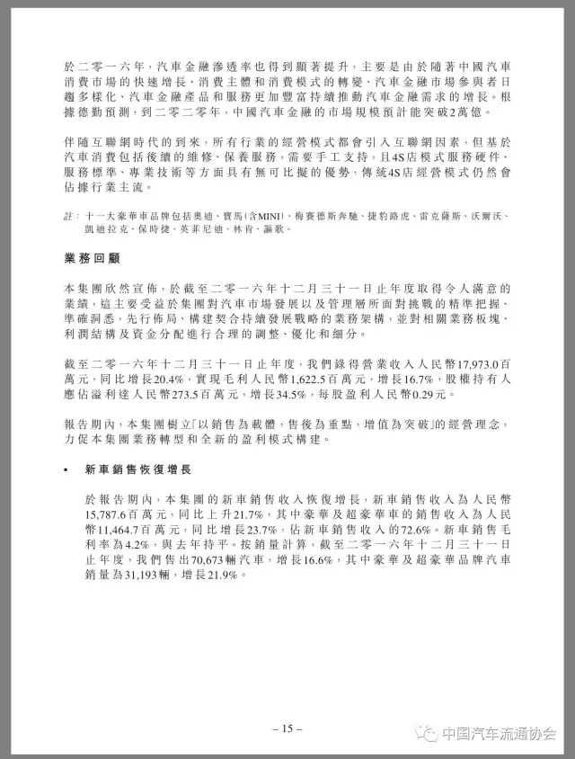 2016年,润东汽车新车销售收入恢复增长,同比上升21.7%,全年售出汽车70673辆,增长16.6%,其中豪华及超豪华品牌汽车31193辆,同比增长21.9%。