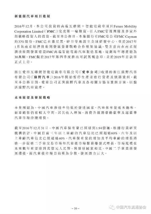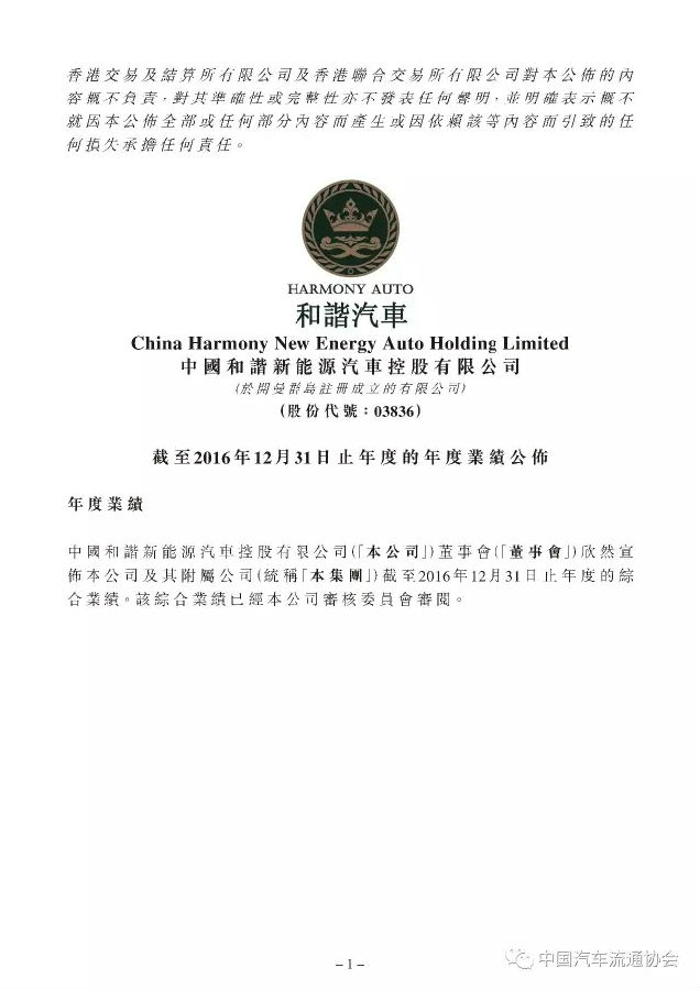 2015年百强汽车经销商集团排行榜上榜企业中国和谐新能源汽车控股有限公司(以下简称“和谐汽车”)于今日公布了其公司及附属公司2016年1月1日至2016年12月31日的综合经营业绩。相关数据显示,和谐汽车2016年总收入与上年基本持平,报告期内未能实现盈利。