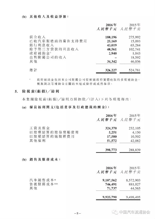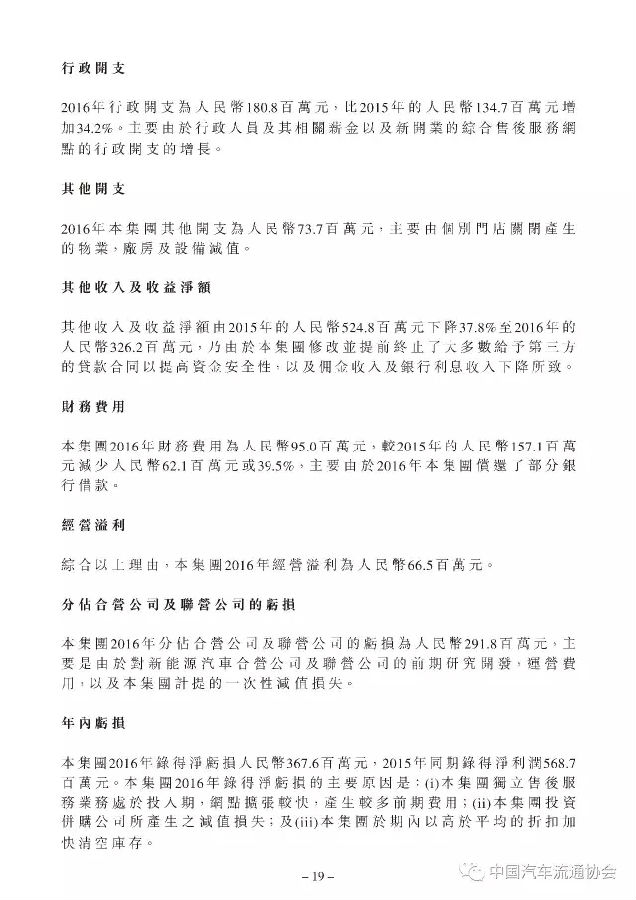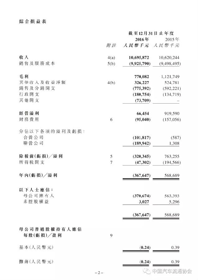 2016年度和谐汽车共销售新车24620台,较上一年度同比增长6.2%;实现总收入106.9亿元人民币(货币单位下同),同比增长0.7%;年内净利润-3.7亿元。