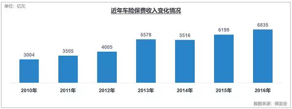 在汽车销量及保有量持续增长的背景下,汽车保险业务的保费收入也随之呈现逐年增长的发展态势,虽近年来增速有所放缓,但如能维持2016年10.3%的增速,预计至2020年,保费收入将达万亿规模。