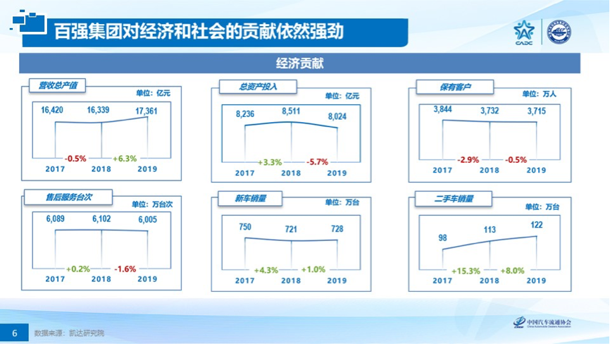 为协助更多企业完成由强向优的转型升级,2020中国汽车经销商大会在发布百强经销商集团营收榜单的基础上,突破性地为所有经销商集团、经销商单店提供三大对标服务:净资产收益率对标、抗风险能力对标、运营效能对标。通过建立完善的对标体系,促进厂商关系平衡,助力经销商集团提升服务运营能力,进而提升整体发展水平。