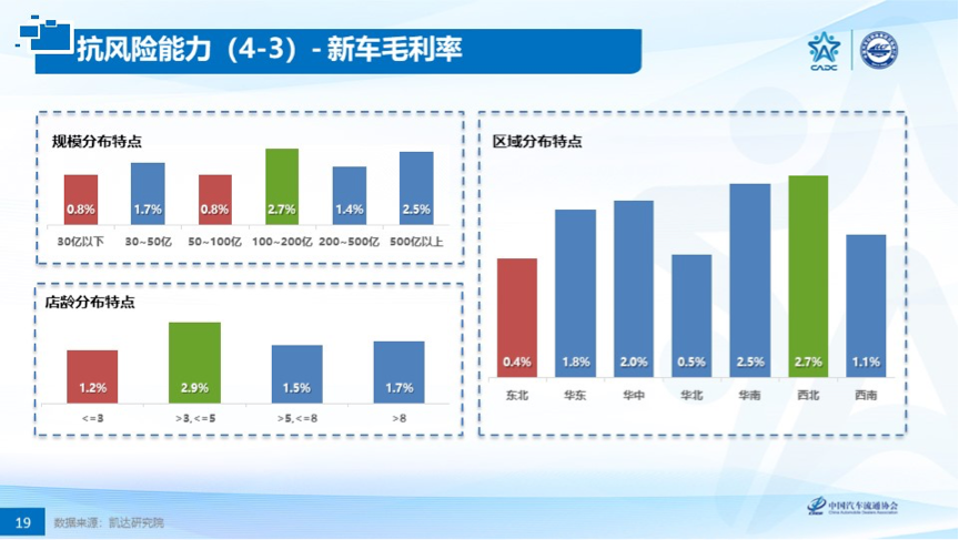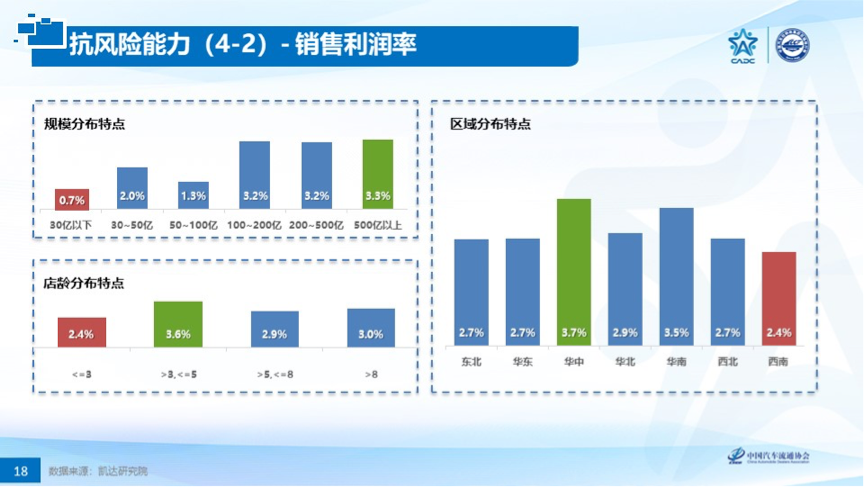 标杆值的发布帮助经销商全面分析获利能力、抗风险性及经营效率,从区域、店龄、规模等维度,全面剖析,为行业提供标杆,为经销商提供预警机制。并通过“四分位法”清晰准确帮助经销商进行对标赋能。