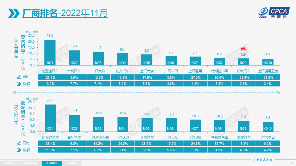 厂商销量领军的比亚迪汽车、吉利汽车、上汽通用五菱、长安汽车同比去年11月增量贡献也是较好的,广汽埃安的增量也很强。