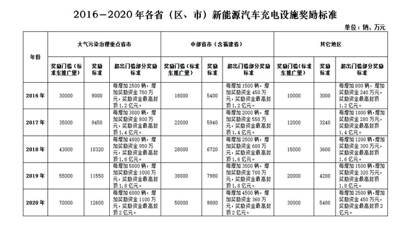 按照《国务院办公厅关于加快新能源汽车推广应用的指导意见》(国办发〔2014〕35号)、《国务院办公厅关于加快电动汽车充电基础设施建设的指导意见》(国办发〔2015〕73号)等文件精神,为加快推动充电基础设施建设,培育良好的新能源汽车市场服务和应用环境,2016-2020年中央财政将继续安排资金对充电基础设施给予奖励。现将有关事项通知如下: