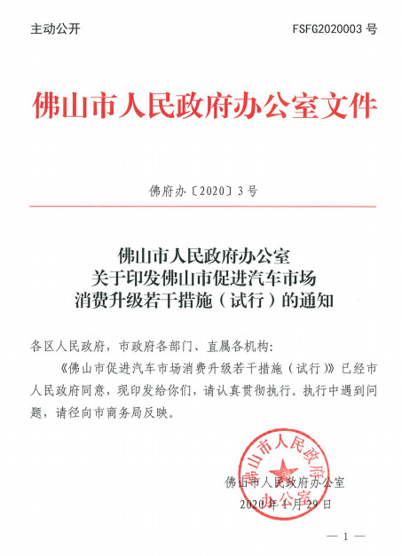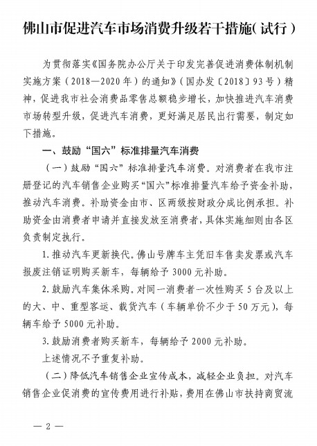 佛山市促进汽车市场消费升级若干措施