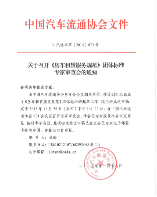 关于召开《房车租赁服务规范》团体标准 专家审查会的通知