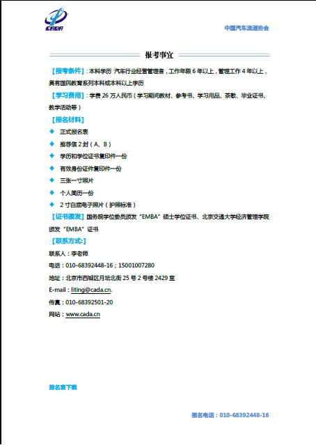 北京交通大学汽车EMBA教育中心硕士学位招生简章