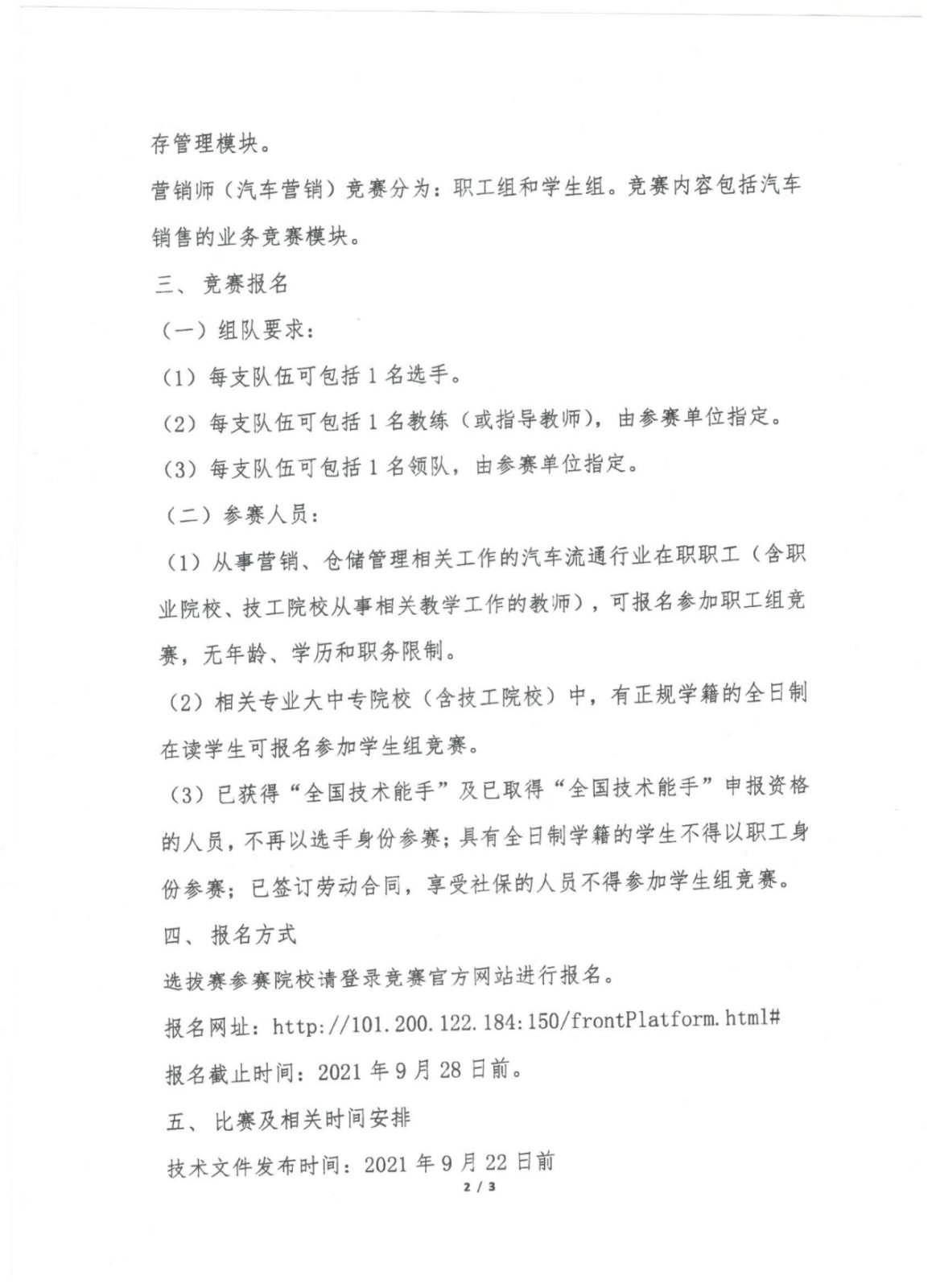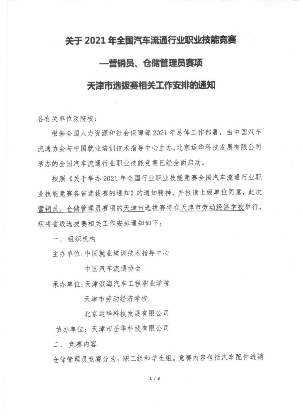 关于2021年全国汽车流通行业职业技能竞赛--营销员、仓储管理员赛项 天津市选拔赛相关工作安排的通知