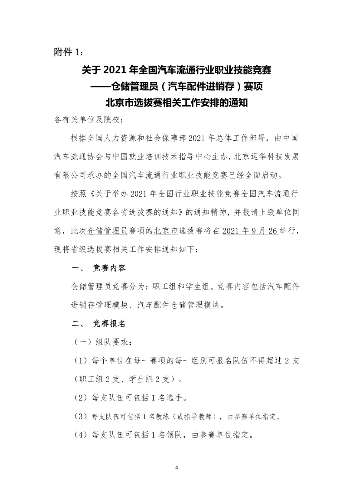 关于2021年全国汽车流通行业职业技能竞赛 仓储管理员(汽车配件进销存)赛项 北京市选拔赛的通知