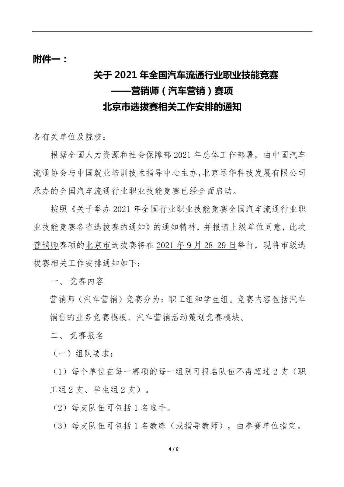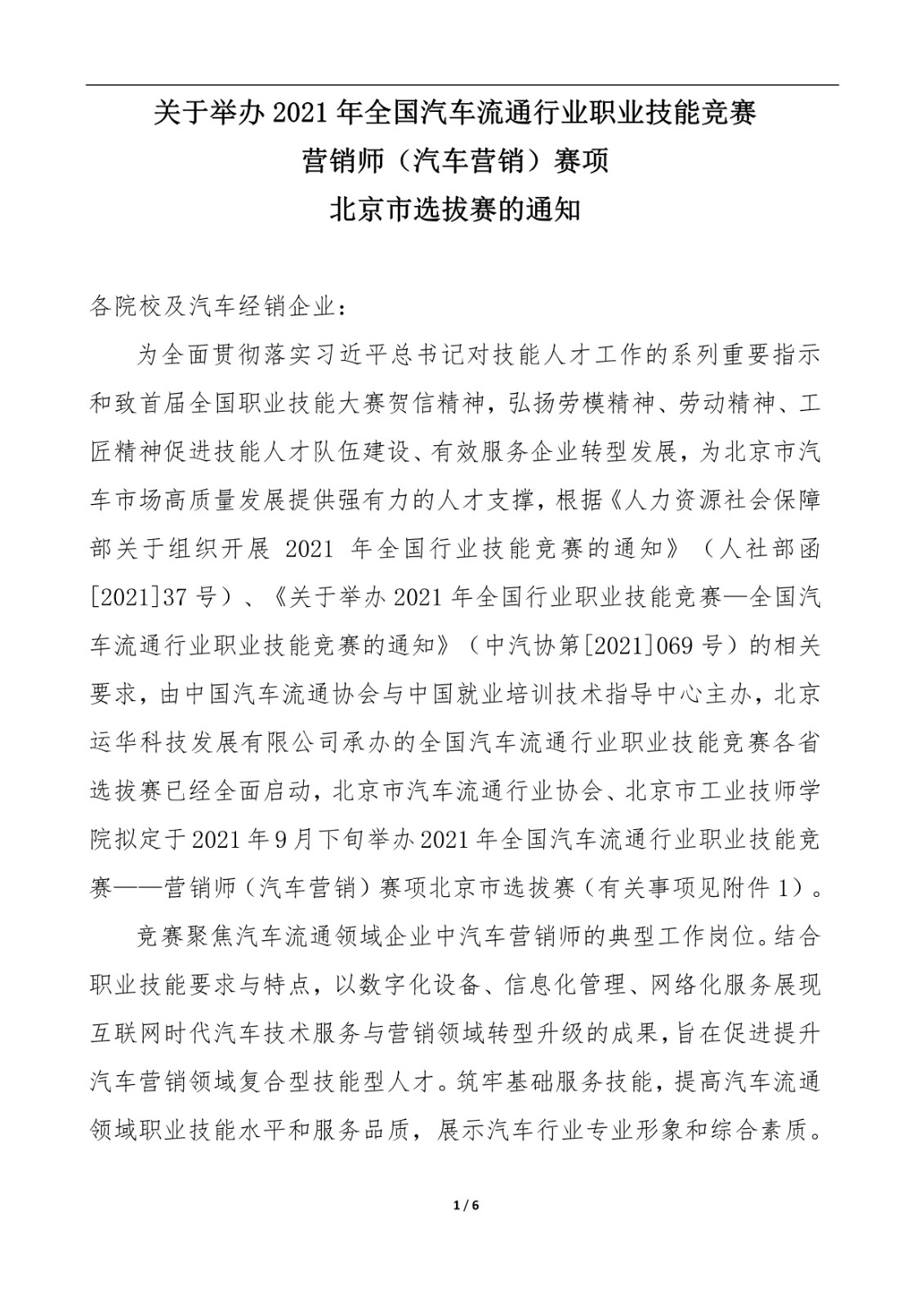关于2021年全国汽车流通行业职业技能竞赛 营销师(汽车营销)赛项 北京市选拔赛的通知