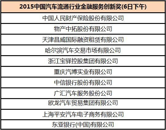 2015年度中国汽车流通行业金融服务创新奖获奖名单