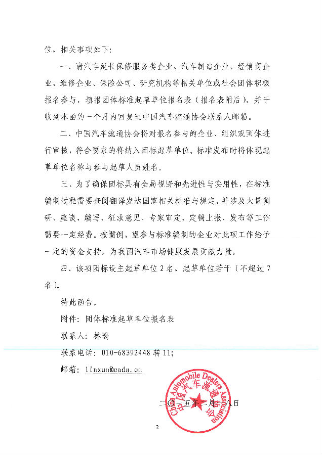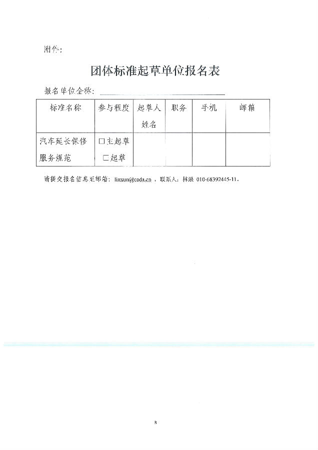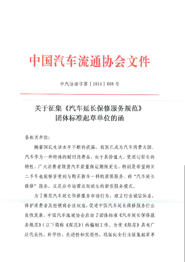 关于征集《汽车延长保修服务规范》团体标准起草单位的函