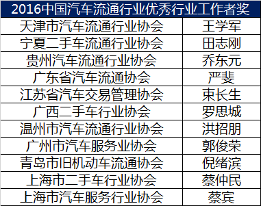 2016中国汽车流通行业优秀行业工作者奖获奖名单