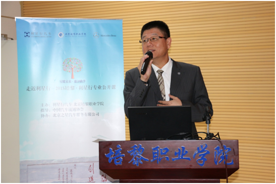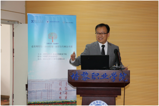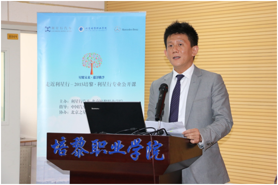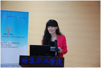 公开课在培黎学院董事尤锡良先生激昂的开篇词中拉开序幕。来自利星行汽车网络发展部的高级总经理陈国欣先生首先登台,他从“价值为本”、“家”和“诚信”三方面给大家立体地介绍了“利星行印象”,让聆听者对全球最大的奔驰经销商集团有了更深入的认识;随后,2012级优秀毕业生、业已在平治担任销售的曹志同学现身说法,将自身在培黎成长的经历和目前的工作相结合,给矢志加入利星行的学弟学妹们指明了努力方向;企业事务部代表分享了利星行汽车的公益之路,通过希望小学、公益夏令营、校企合作等一系列的案例演绎,让大家更清晰了解利星行在企业社会责任上的体系和付出,从而对利星行品牌更加尊敬;北京之星总经理张光明先生用店内一位清洁工阿姨的例子,形象地展现利星行DNA中“主人翁意识”特质;在公开课压轴部分,培训学院的珊丹女士更是另辟蹊径,通过数部电影的分享,勉励学子养成良好的学习习惯,让学习成为生活方式,她总结的一句“向知识致敬”赢得全场掌声。公开课结束后,来自中国汽车流通协会的副秘书长刘文姬女士高度评价此次公开课活动,“既让大家长了知识,又展现了企业的风采,”并由衷感叹“培黎利星行专业的学生真是优秀!”公开课结束后,培黎向主讲本次课程的陈国欣先生、珊丹女士、张光明先生颁发“客座讲师”聘书。