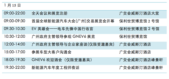 (1)2场主论坛(GNEV6开幕论坛、开发者大会暨闭幕论坛),6场平行论坛(主题分别为智能汽车、微型车、基础设施、动力电池、汽车共享、工程师夜话)、2场主题洽谈会(车型供应链征询会、车型集团客户订购会)