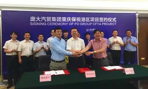 6月7日上午,庞大汽贸集团重庆保税港区项目签约仪式在重庆市两江新区管委会金山大厦隆重举行。