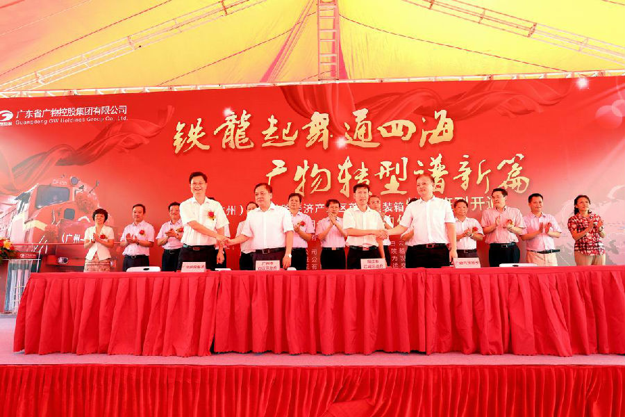 2016年7月20日,中国广州—7月19日上午,广东(广州)国际铁路经济产业区首列集装箱特需班列开通暨广物控股集团合作项目签约仪式在广物汽贸母集团广物控股白云仓成功举办。此次活动是广东省积极响应党和国家“一带一路”发展战略号召,同时也是广物控股、广物汽贸创新改革的重要标志。省政府及省发展改革委、省经济和信息化委、省商务厅、省国资委、省工商局,广州市及广州市白云区、阳江市江城区政府有关领导,广铁集团、广东华为现代物流有限公司、广州大顺发国际物流有限公司、广东粤运朗日股份有限公司、佛山市路之友机械制造有限公司等合作单位相关领导和各界嘉宾共150多人出席了仪式。