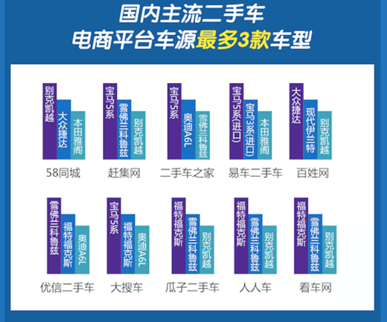 连续3个月,二手车发布量中热门车型几乎没有变化。别克凯越一直是发布量最大的车型,可见别克凯越市场保有量最多,最受用户欢迎。同时买二手车的用户也可参考热门车型挑选爱车,相对保值率较高。