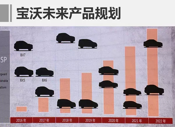 宝沃BX5已经在2016年广州车展上亮相,并在2017年上半年公布售价。另一款宝沃BX6量产版也将在2017年正式上市。与此同时,另外三款车型有望是纯电动车或运动型车。此外,从产品规划中可以看出,在2019年宝沃预计将会推出一款MPV,到2020年预计还会推出跑车以及一款Coupe车型。