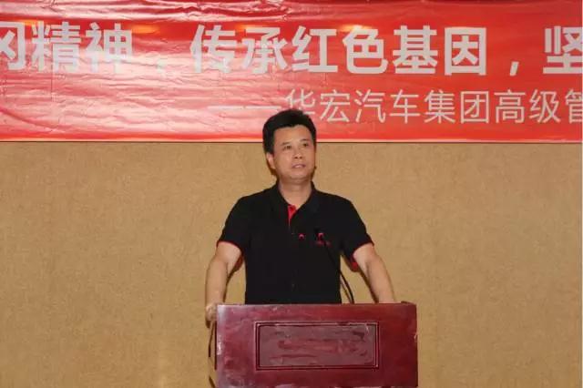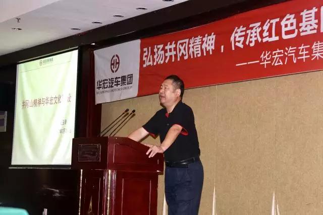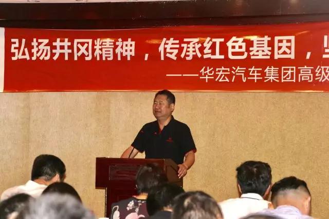 在23日下午举行的大会上,戴华发表重要讲话。他在讲话中深情地表达了对毛泽东等老一辈无产阶级革命家创建革命根据地的崇敬之情,表达了在井冈山研修期间,被井冈山红色历史深深感动的心得与体会。他在讲话中指出,华宏汽车集团是民营企业,是在中国特色社会主义道路上成长起来的企业,我们必须自觉接受中国共产党的领导、自觉追随党辉煌的历史、自觉追随党提出的实现中华民族伟大复兴的历史使命,这是我们前进的方向,也是我们最高的理想、最大的责任。我们要把井冈山精神转变为生产力、转变为我们前进的动力、转变为我们的团队精神。当前,中国汽车流通业出现了许多新情况、新问题、新机遇和新挑战,我们要坚定把华宏建设成百年老店的信念,以井冈山敢闯新路的创新精神,探寻企业创新的突破口、新举措,实现企业更大的跨越。