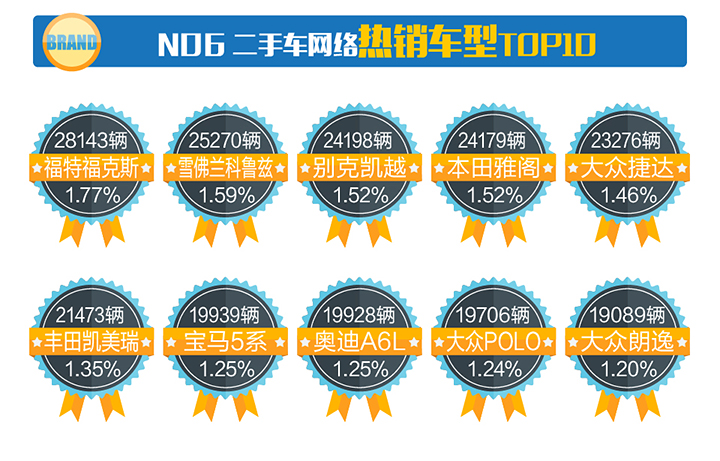 六、2017年9月二手车热销车型TOP10